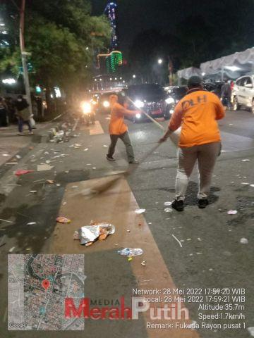 Merah Putih I SURABAYA- Pasca pagelaran Surabaya Vaganza dengan kegiatan Parade Bunga dan Parade Budaya di sepanjang Jalan Tunjungan – Siola hingga Alun-Alun Kota Surabaya, Sabtu (29/5/2022) malam kemarin. Dinas Lingkungan Hidup (DLH) Kota Surabaya langsung gerak cepat melakukan pembersihan sampah.