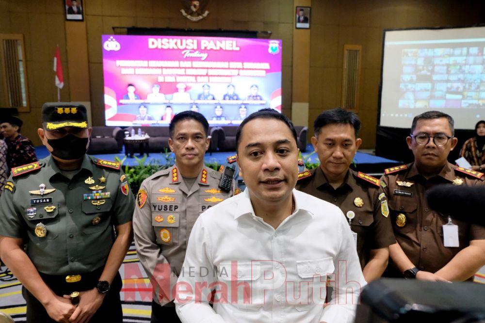 mediamerahputih.id I Pemerintah Kota (Pemkot) Surabaya bersama Polrestabes Surabaya menggelar Diskusi Panel dengan Forkopimda Surabaya dan semua stakeholder Surabaya di Hotel Mercure Grand Mirama, Surabaya, Rabu (14/12/2022). Mereka duduk bersama dalam satu forum untuk merumuskan solusi dan langkah-langkah dalam mengatasi kelompok remaja bersenjata di Kota Pahlawan.