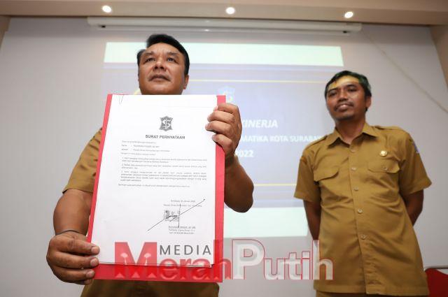 Merah Putih I SURABAYA- Wali Kota Surabaya Eri Cahyadi pada Januari 2022 lalu saat penerapan Struktur Organisasi dan Tata Kerja (SOTK) baru. Meminta seluruh jajarannya mulai dari Kepala PD, camat dan lurah untuk menandatangani kontrak kinerja. Tujuannya, agar pelayanan masyarakat di setiap unit berjalan maksimal dan lebih baik lagi ke depannya.