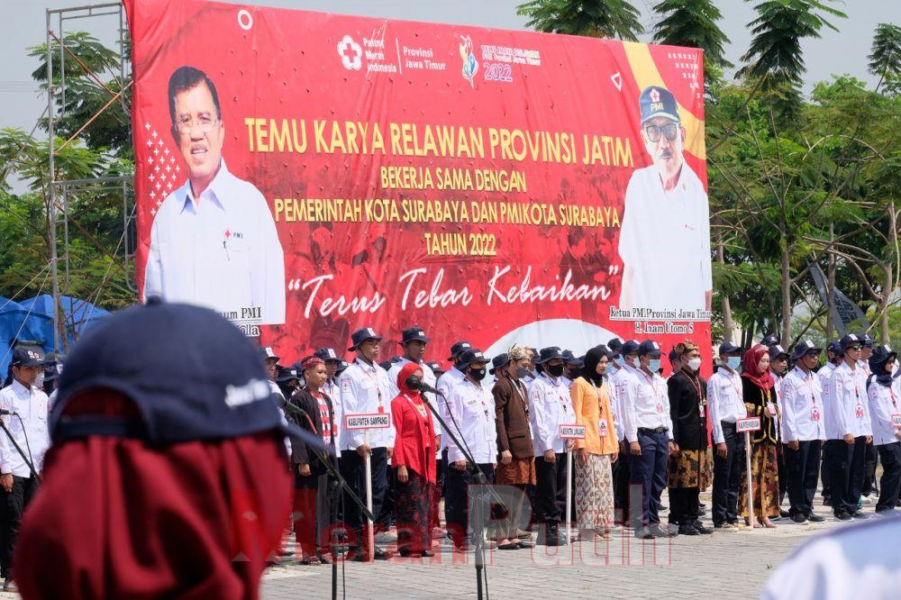 mediamerahputih.id I SURABAYA- Kota Surabaya menjadi tuan rumah Temu Karya Relawan (TKR) Palang Merah Indonesia (PMI) se-Jawa Timur. Event yang digelar di area Stadion Gelora Bung Tomo itu dibuka dengan apel yang dipimpin langsung oleh Ketua PMI Jawa Timur Imam Utomo S.